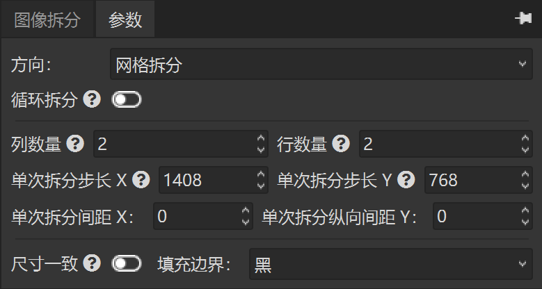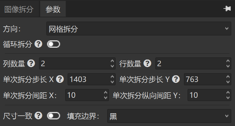 这里就会用到图像拆分工具的网格拆分功能。我配置的工具参数如下
